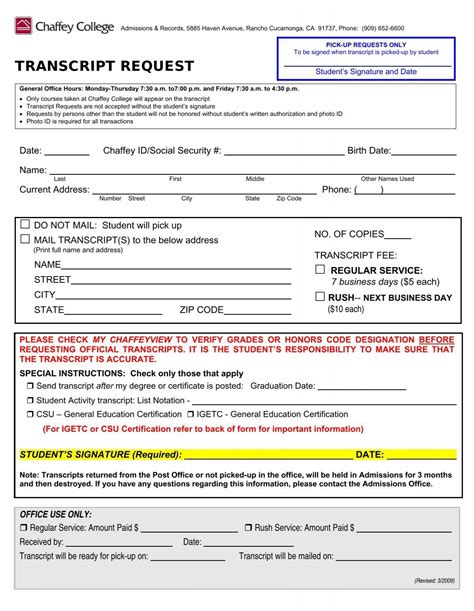 While sending transcripts from Chaffey College may seem like a straightforward process, there is a hidden secret that can make it even easier. Many colleges and universities now participate in electronic transcript exchange networks, such as the National Student Clearinghouse. These networks allow for seamless and secure transmission of transcripts between institutions.